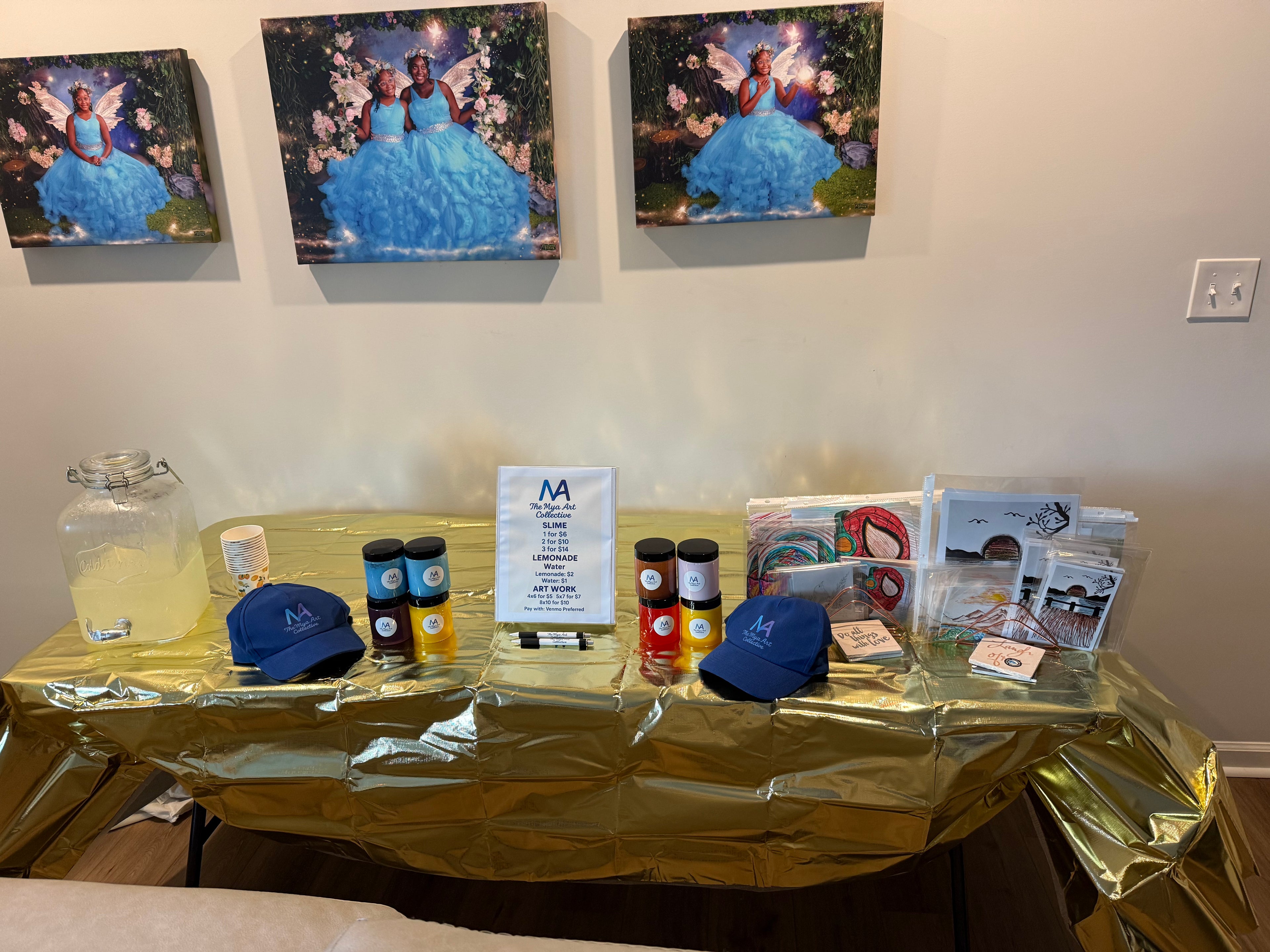 The Mya Art Collective is a youth-led creative brand specializing in original printed artwork, handmadeslime, and fresh bottled lemonade. Founded by 10-year-old artist and CEO Mya, the Collective bringscolor, imagination, and fun to every product. From community pop-up shops to custom art pieces andface-painting events, Mya’s mission is simple: create joy, inspire creativity, and make art accessible forall ages.